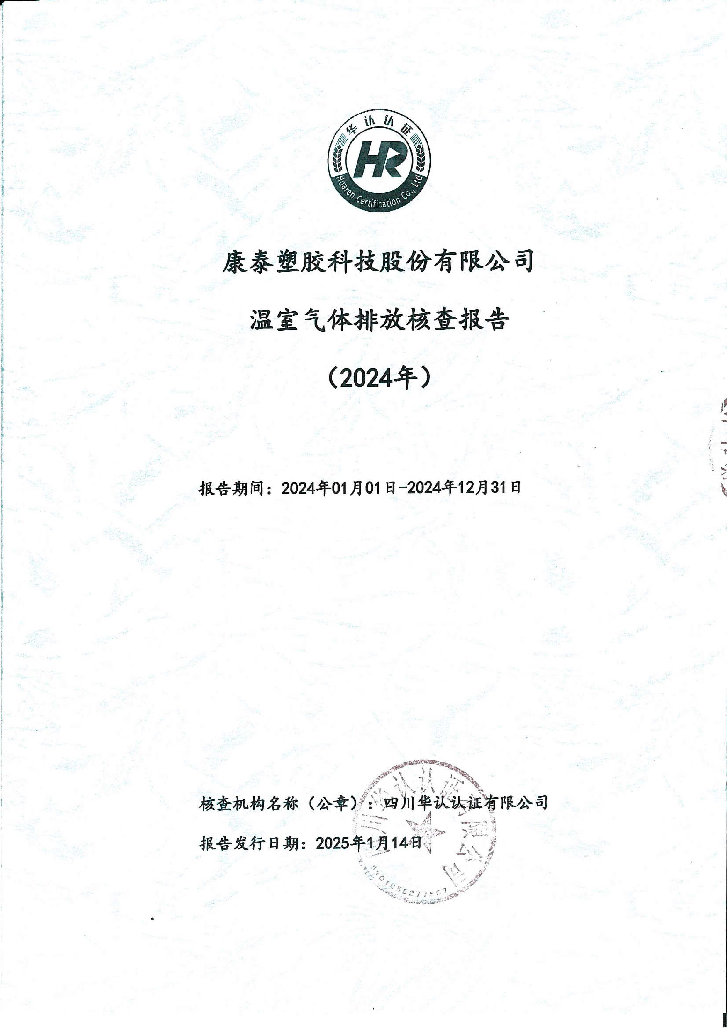 溫室氣體排放核查報(bào)告(2024年)